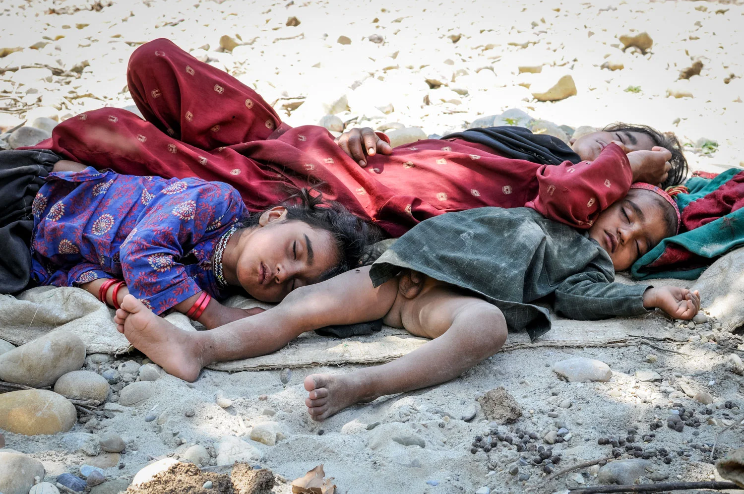Bashi, Salma, and Yasin, crashed out in the streambed.